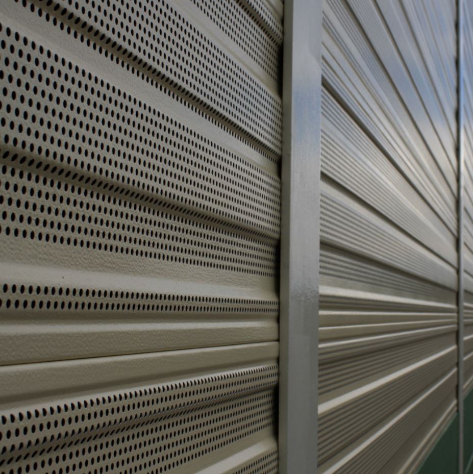 - Перфорированный лист оцинкованной тонколистовой рулонной стали с полимерным покрытием PURAL толщиной от 0,65 мм. Масса цинкового слоя — не менее 275 г/м², коэффициент перфорации — не менее 30%.